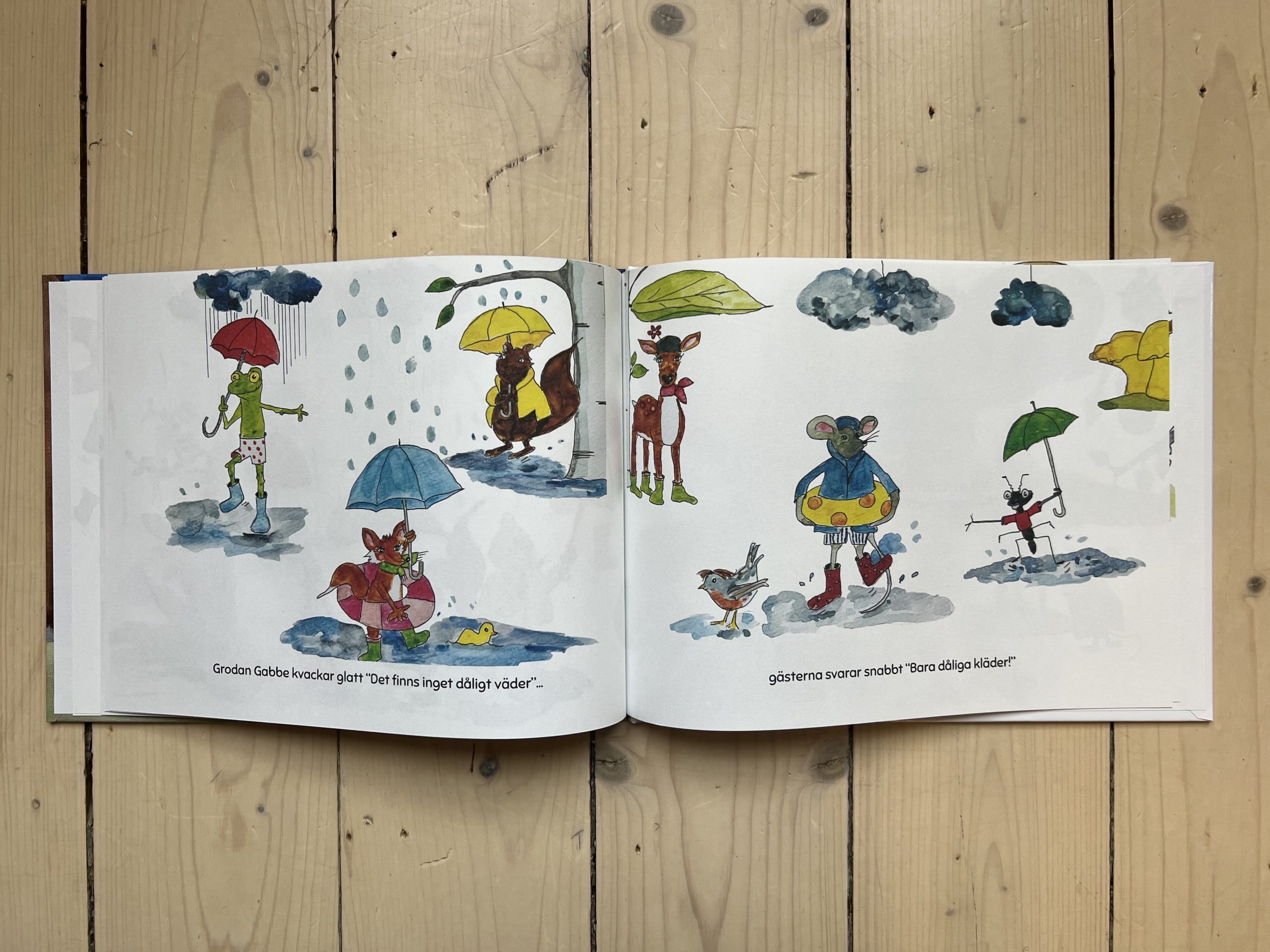 En varm, rimmande högläsningsbok som uppmuntrar till lekfullhet, nyfikenhet och att omfamna varje årstid – även de blöta. Perfekt för små bokslukare och stora sagoläsare.